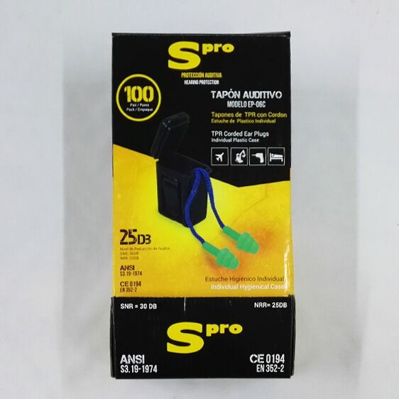 Nombre: TAPÓN AUDITIVO SILICONA CAJA Y CORDÓN REUTILIZABLE Modelo: SPRO Tamaños: UNICA Características: PARA 25 DB Uso: INDUSTRIAL Y CONSTRUCCIÓN Materiales: SILICONA